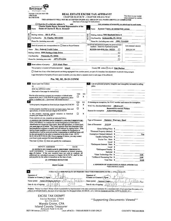 | 1 | 10/01/2019 | PRD | Personal Representatives Deed | CLARK, NEAL H | CLARK, NEAL H | | | $0.00 | 41303 | 4476678 |