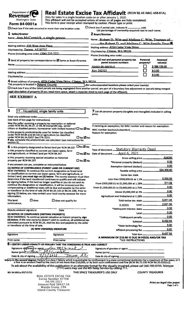 | Mailing Address: | 6724 VIEWMONT CLINTON, WA 98236 | % Ownership: | 100.0000000000% |