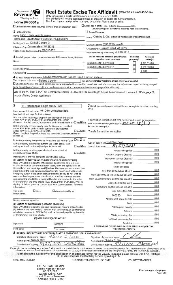 | Mailing Address: | 3623 ORCAS DR CLINTON, WA 98236-9213 | % Ownership: | 100.0000000000% |