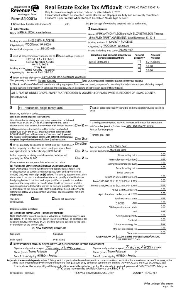 | Mailing Address: | 1251 N RAINER LN OAK HARBOR, WA 98277 | % Ownership: | 100.0000000000% |