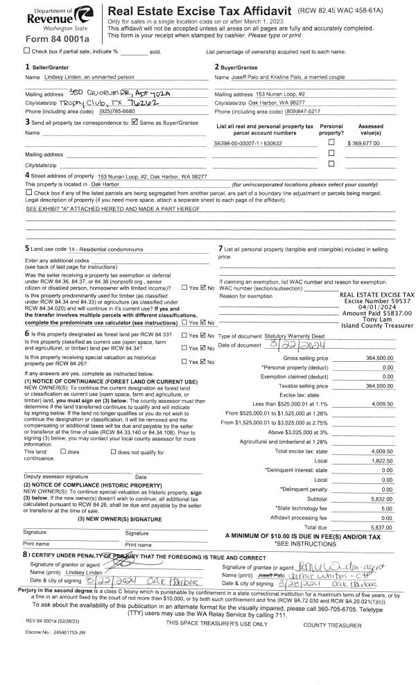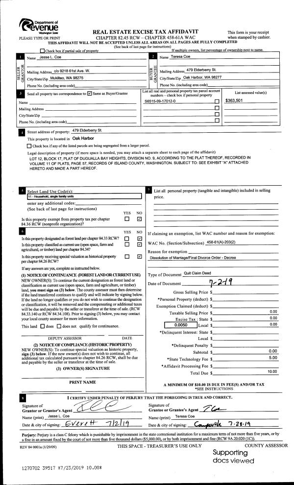 | Mailing Address: | KRYSTAL G RICHARDSON 50 SE O'LEARY ST OAK HARBOR, WA 98277 | % Ownership: | 100.0000000000% |