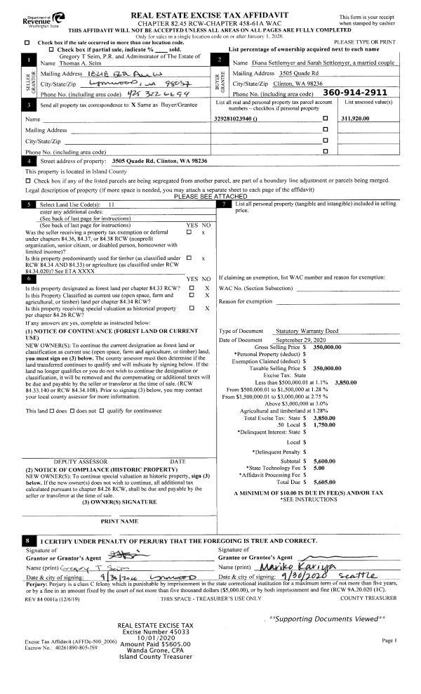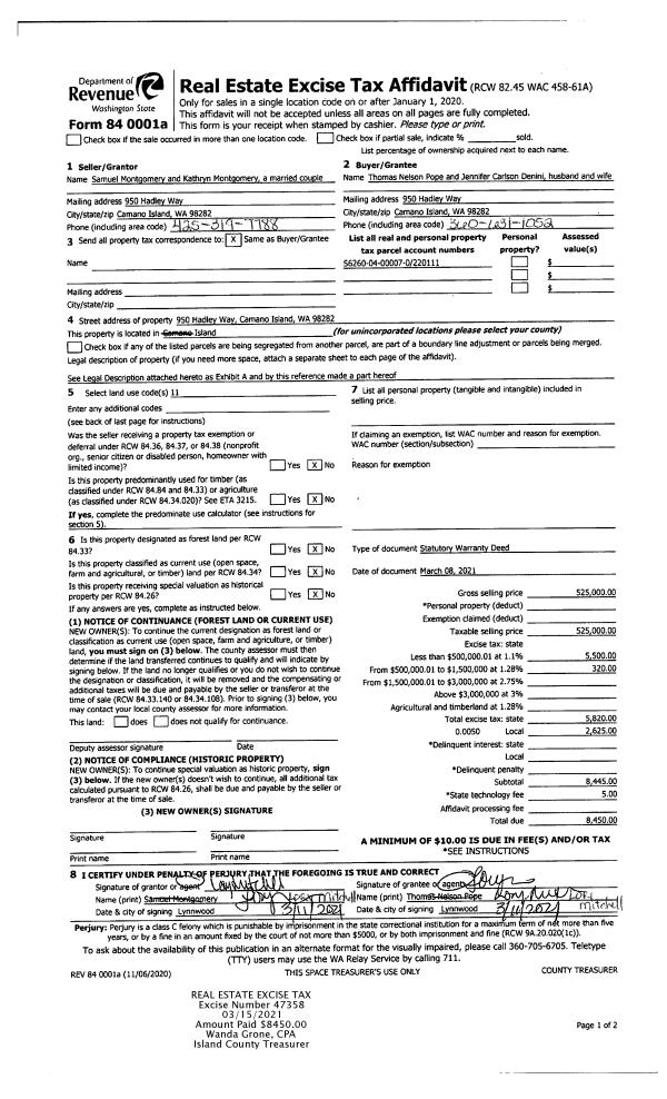 | Tax Area: | 710 - APPRAISER-S Whid Schl Dist, outside Langley, improved & 1 acre or less | Land Use Code | 11 |