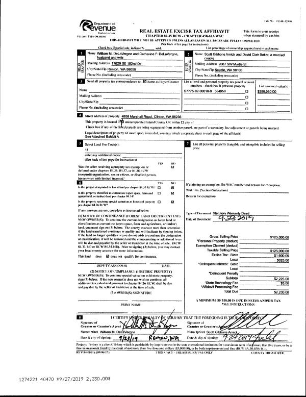 | 1 | 10/31/2018 | WD | Warranty Deed | SEA VIEW WATER LLC | CASCADIA WATER LLC | | | $19,690.00 | 36532 | 4454476 |