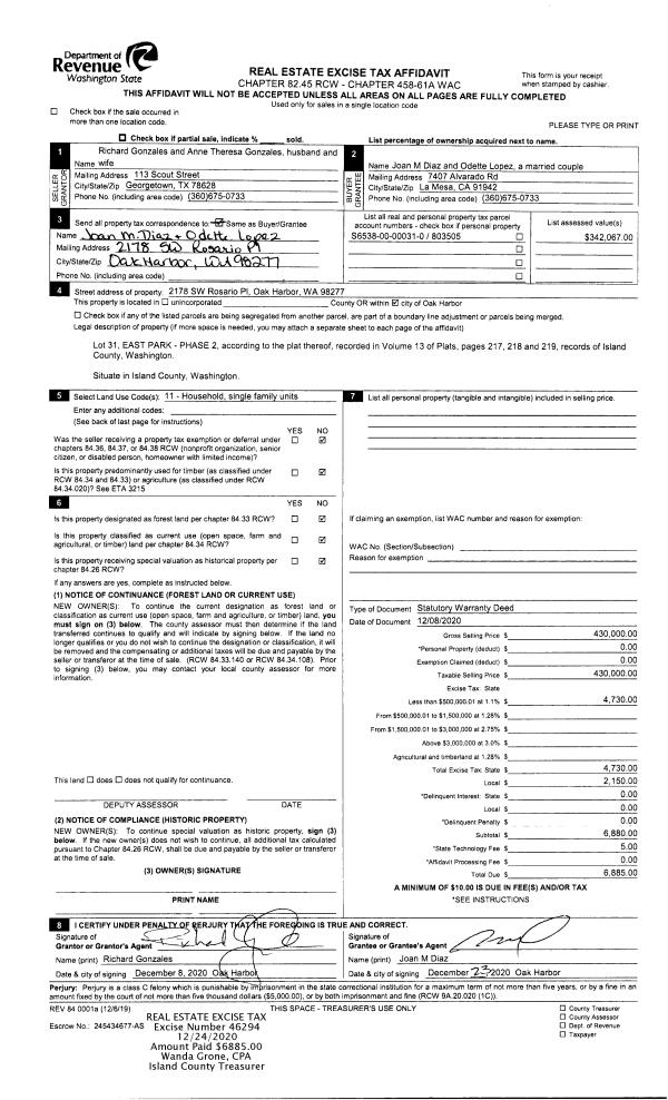 | NWHIDPRMT | P & R N Whidbey GEN | 0.2004466701 | $330,000 | $330,000 | $66.15 | | |