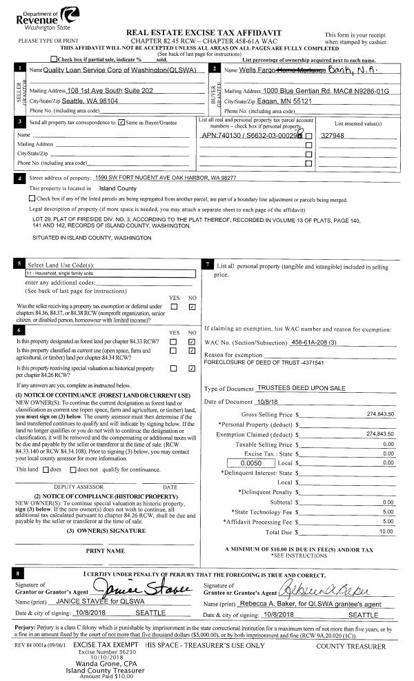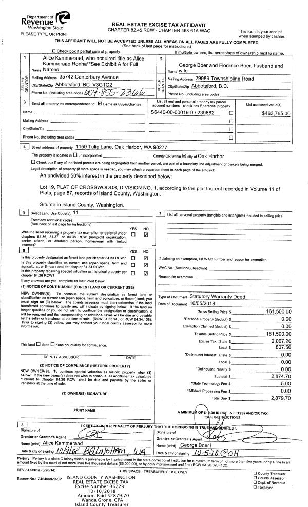| Mailing Address: | REBECCA WAGNER 330 NW CLIPPER DR OAK HARBOR, WA 98277-2074 | % Ownership: | 100.0000000000% |