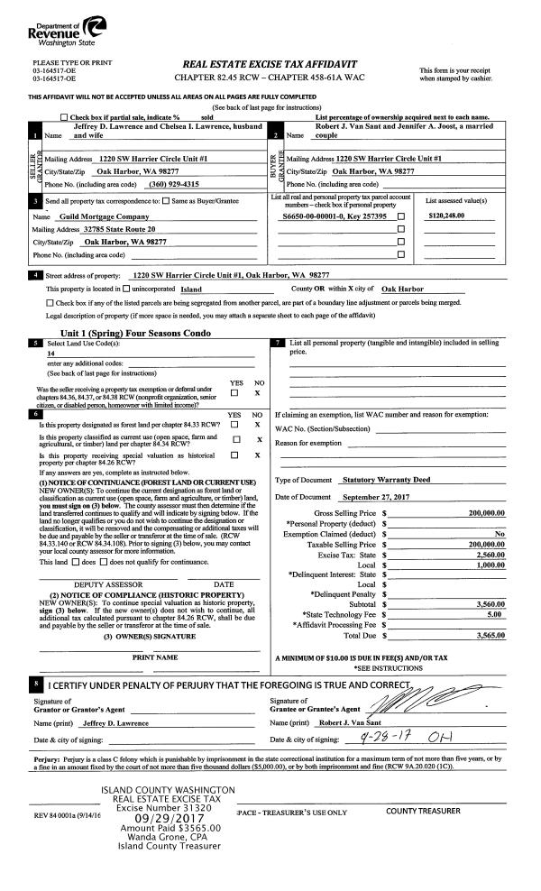 | Mailing Address: | NOELL ANN WILSON 1043 NW ANCHOR DR OAK HARBOR, WA 98277 | % Ownership: | 100.0000000000% |