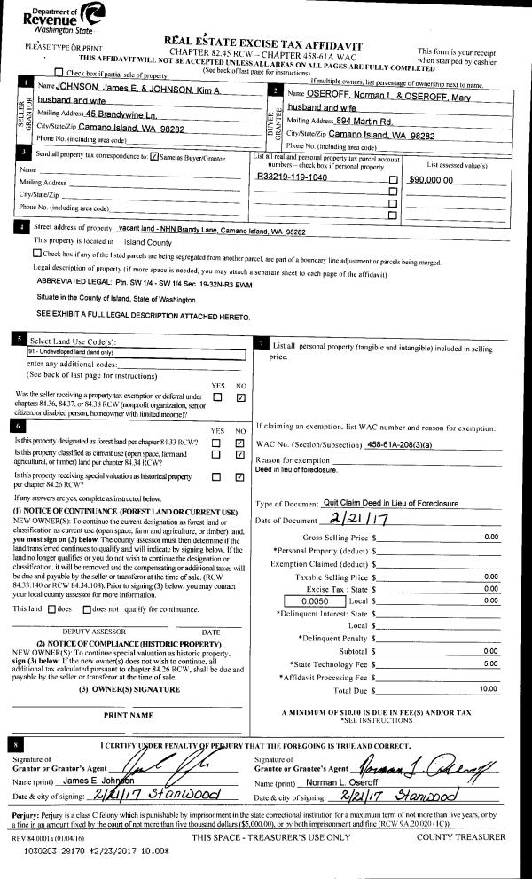 | Mailing Address: | ASHLEY V OLSON 1083 NW CATHLAMET DR OAK HARBOR, WA 98277 | % Ownership: | 100.0000000000% |