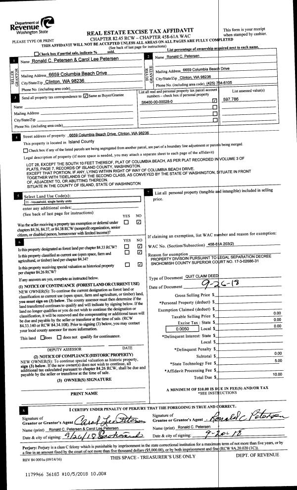 | Mailing Address: | 1023 NW CATHLAMET OAK HARBOR, WA 98277 | % Ownership: | 100.0000000000% |