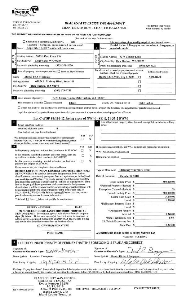 | Mailing Address: | 1178 OLSON RD COUPEVILLE, WA 98239-3116 | % Ownership: | 100.0000000000% |
