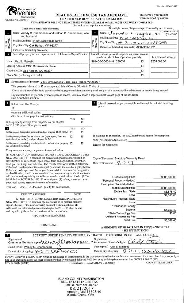 | Mailing Address: | 788 NW CATHLAMET DR OAK HARBOR, WA 98277 | % Ownership: | 100.0000000000% |