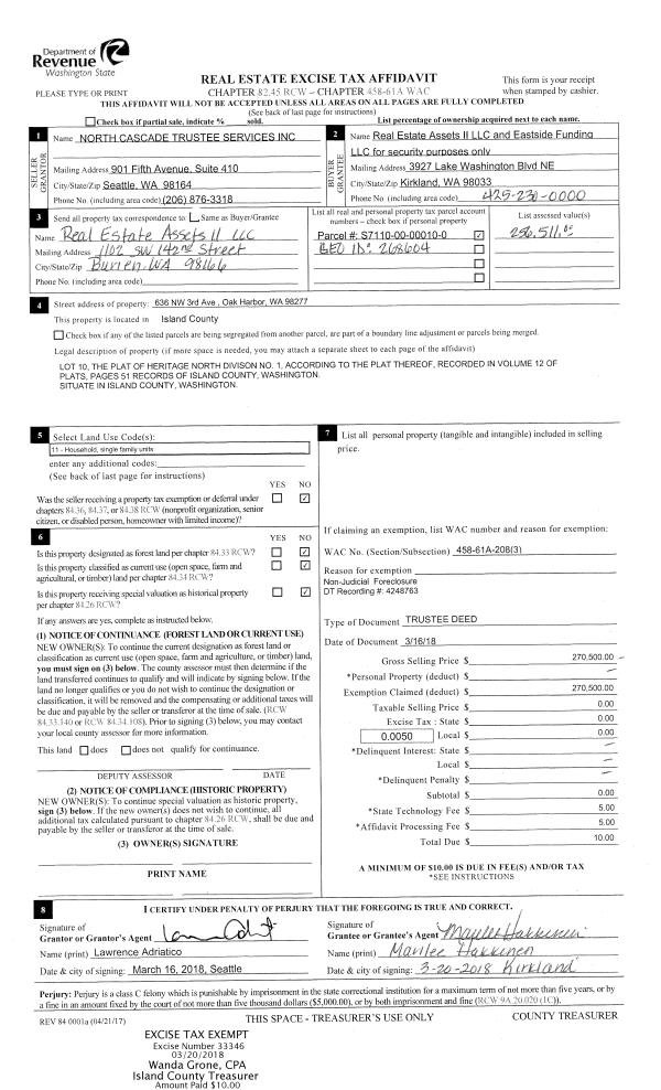 | Mailing Address: | CLINT D SMITH 375 NW 8TH AVE OAK HARBOR, WA 98277-2059 | % Ownership: | 100.0000000000% |