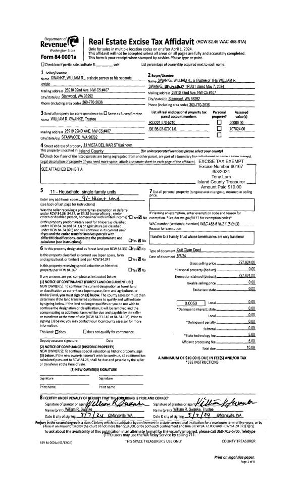 | Mailing Address: | DEBORAH A KUENLE JTWRS 655 NW HIYU DR OAK HARBOR, WA 98277-3879 | % Ownership: | 100.0000000000% |