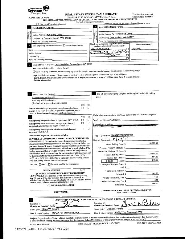 | Mailing Address: | 853 NW ILLAHEE DR OAK HARBOR, WA 98277 | % Ownership: | 100.0000000000% |