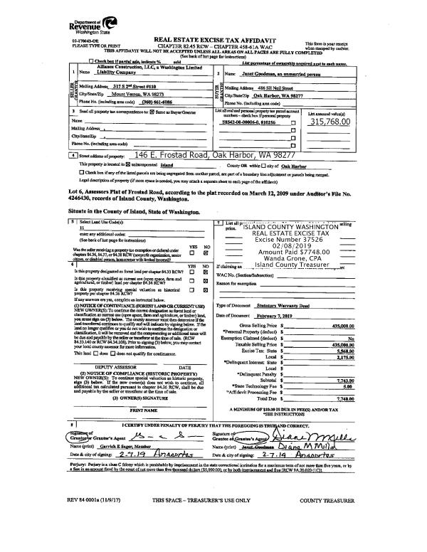 | Mailing Address: | MARIAM A SALINAS 720 NORTHWEST HYAK DR OAK HARBOR, WA 98277 | % Ownership: | 100.0000000000% |