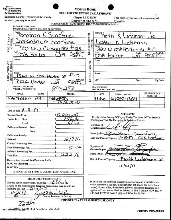 | Mailing Address: | PARKER CHEZICK 782 NW HYAK DR OAK HARBOR, WA 98277 | % Ownership: | 100.0000000000% |