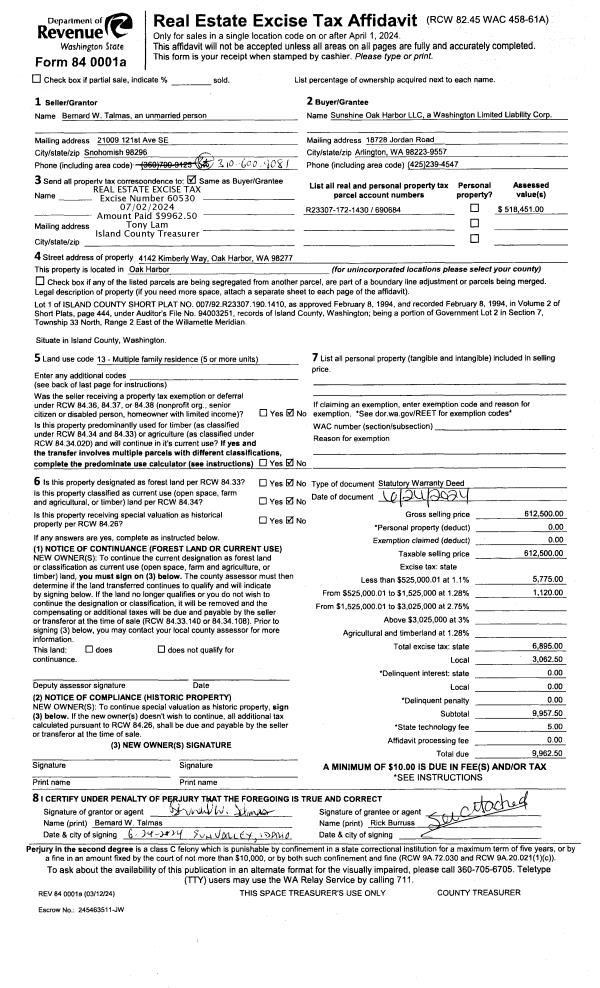 | Mailing Address: | SHELLY HARRIS 923 ILLAHEE DR OAK HARBOR, WA 98277 | % Ownership: | 100.0000000000% |