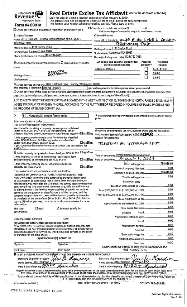 | Mailing Address: | OLIVIA M FORRESTER 971 NW ILLAHEE DR OAK HARBOR, WA 98277 | % Ownership: | 100.0000000000% |