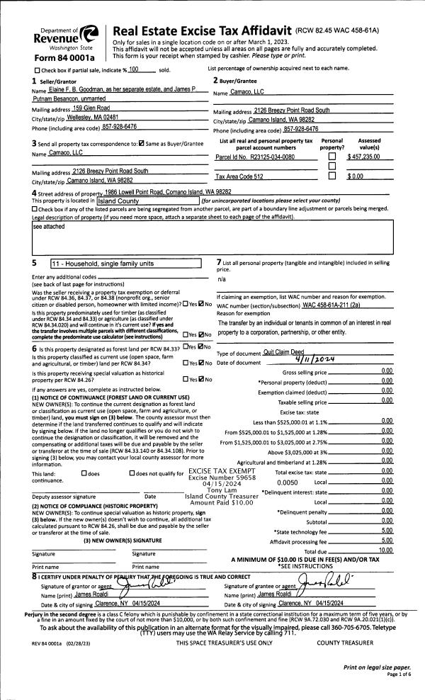 | Mailing Address: | 965 NW ILLAHEE DR OAK HARBOR, WA 98277-3887 | % Ownership: | 100.0000000000% |