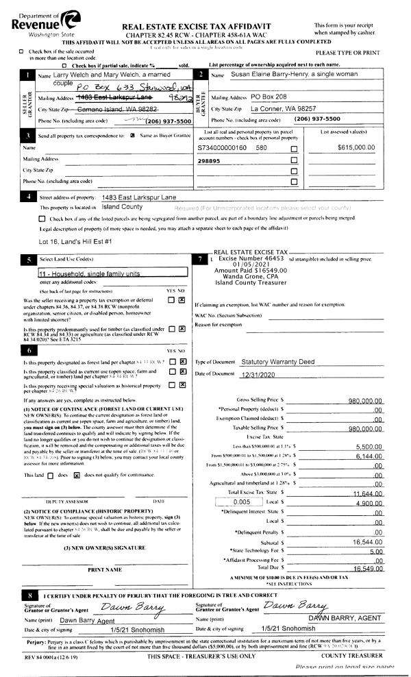 | Mailing Address: | 953 NW ILLAHEE DR OAK HARBOR, WA 98277 | % Ownership: | 100.0000000000% |
