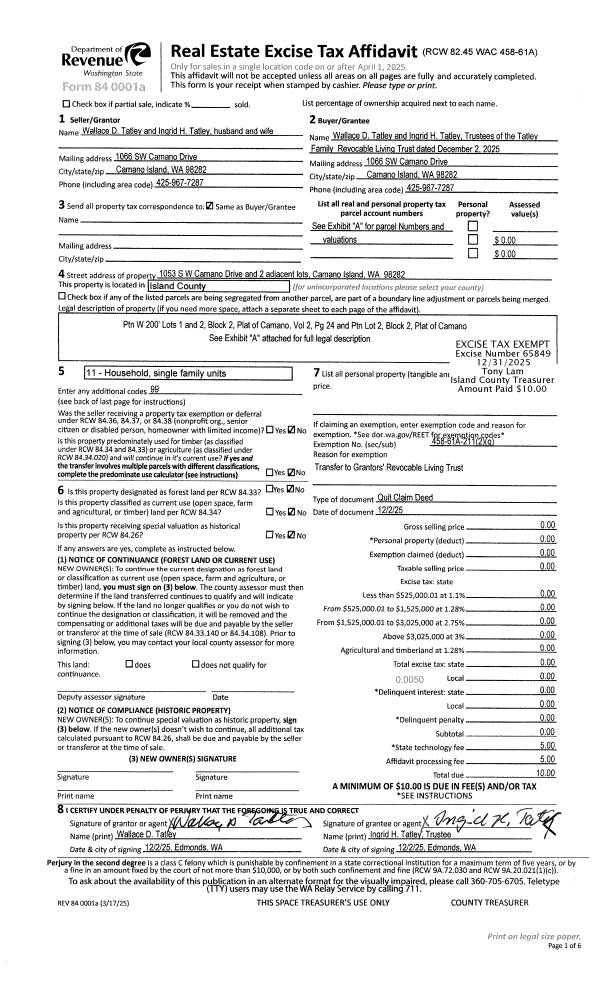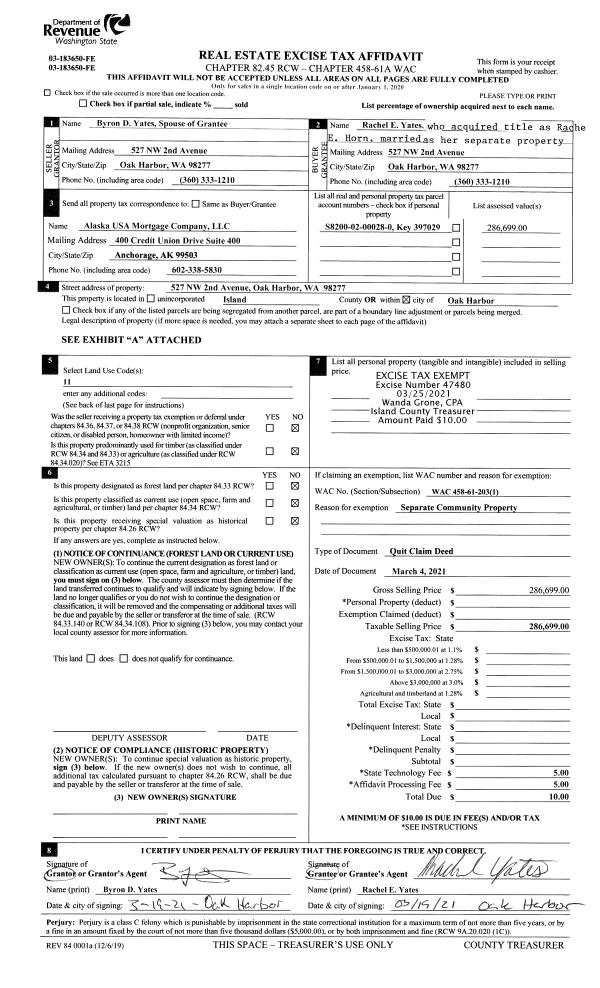 | Mailing Address: | 790 NW HIYU DR OAK HARBOR, WA 98277 | % Ownership: | 100.0000000000% |