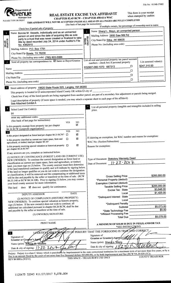 | Mailing Address: | 939 NW HIYU DR OAK HARBOR, WA 98277-3882 | % Ownership: | 100.0000000000% |