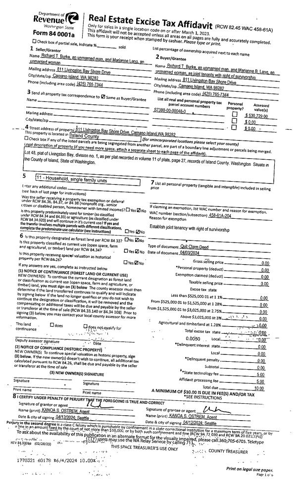 | 1 | 08/21/2020 | QCD | Quit Claim Deed | PIERCE, CECIL E | PIERCE TTEE, CECIL EUGENE | | | $0.00 | 44524 | 4495413 |