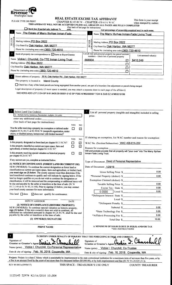 | Mailing Address: | MARY BRADY 1089 SE 6TH AVE OAK HARBOR, WA 98277 | % Ownership: | 100.0000000000% |