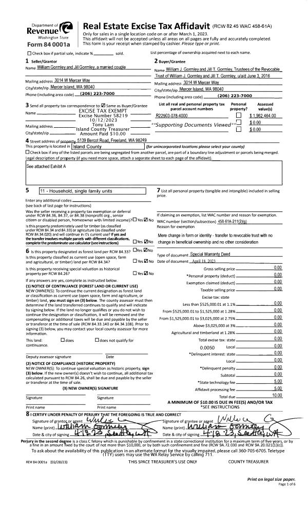 | Mailing Address: | TAMARA D HILL 1366 CROSBY RD OAK HARBOR, WA 98277 | % Ownership: | 100.0000000000% |