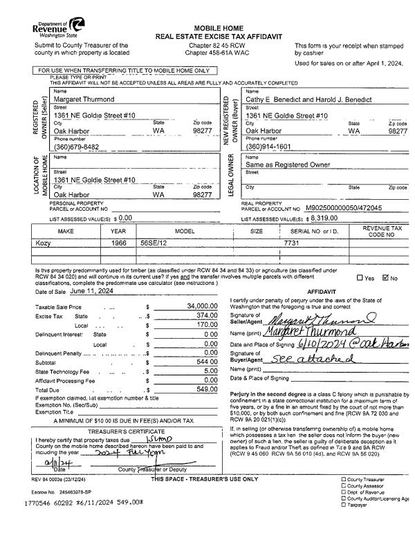| Mailing Address: | 658 SE JEROME ST OAK HARBOR, WA 98277 | % Ownership: | 100.0000000000% |