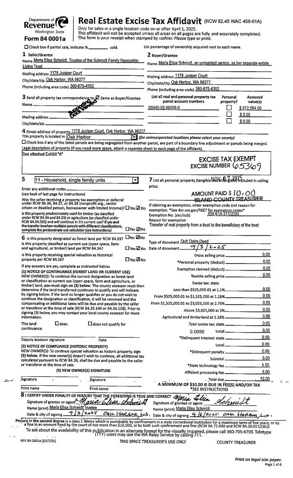 | Mailing Address: | CAREN G BOHARDT 780 SHANGRI LA CIRCLE COUPEVILLE, WA 98239 | % Ownership: | 100.0000000000% |