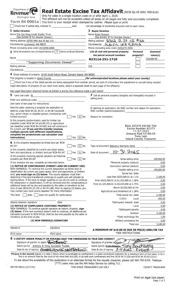 | Mailing Address: | JADE DREYER 793 RACE RD COUPEVILLE, WA 98239 | % Ownership: | 100.0000000000% |