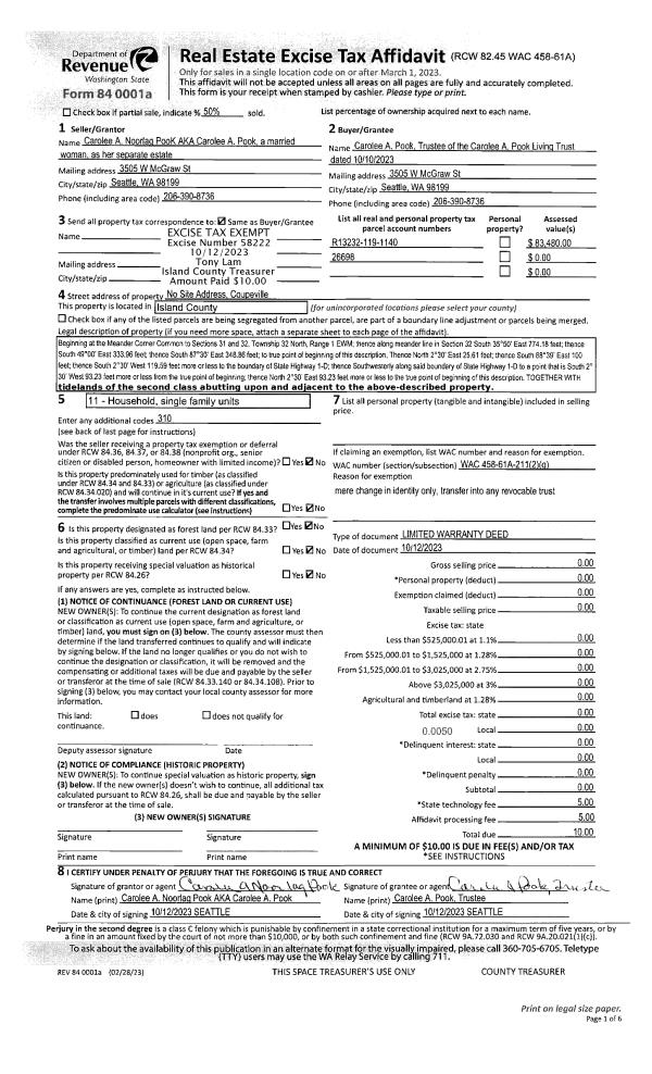 | Mailing Address: | 2905 ALPINE DR OAK HARBOR, WA 98277-8953 | % Ownership: | 100.0000000000% |