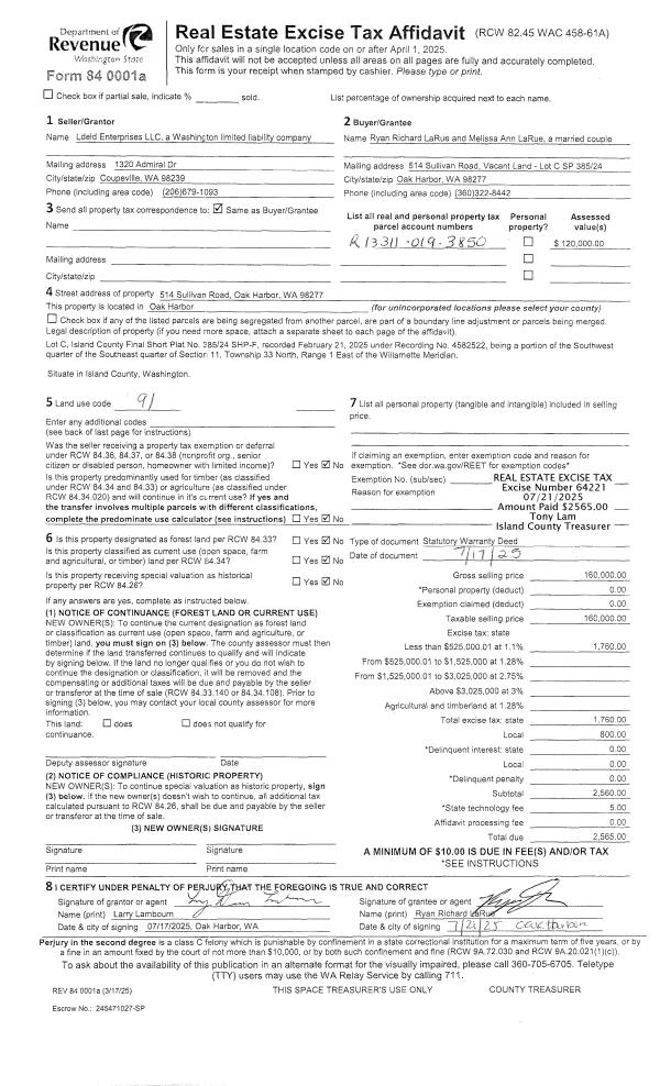 | Mailing Address: | 1280 PRIVATE DR BELLINGHAM, WA 98226 | % Ownership: | 100.0000000000% |