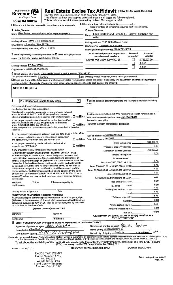 | Mailing Address: | RONALD M EFFA & TROY DIANA EFFA FELACTU 1280 PRIVATE DRIVE BELLINGHAM, WA 98226 | % Ownership: | 100.0000000000% |