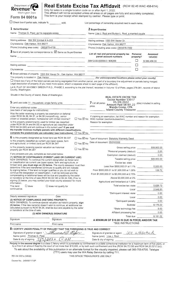 | | | | | Taxes w/o Exemptions: | $126.38 | | |
