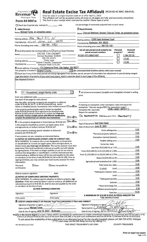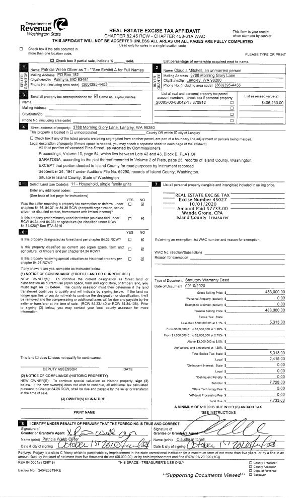 | 1 | 11/19/2019 | WD | Warranty Deed | GASPAROVICH, CHRISTINE D | SALISH SEA, LLC (51%) | | | $60,000.00 | 43284 | 4488377 |