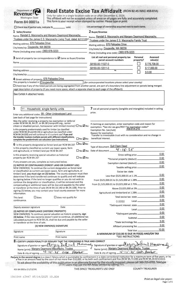 | Mailing Address: | 204 SW TERRY RD #50 COUPEVILLE, WA 98239 | % Ownership: | 100.0000000000% |
