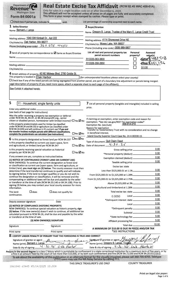 | Mailing Address: | 2685 SAN JUAN ST COUPEVILLE, WA 98239 | % Ownership: | 100.0000000000% |