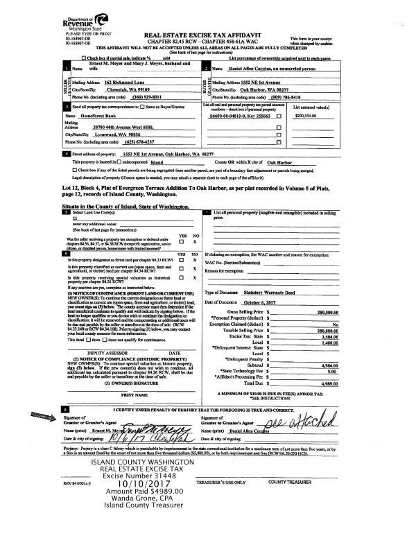 | Mailing Address: | 985 LYNDEAN LN OAK HARBOR, WA 98277 | % Ownership: | 100.0000000000% |