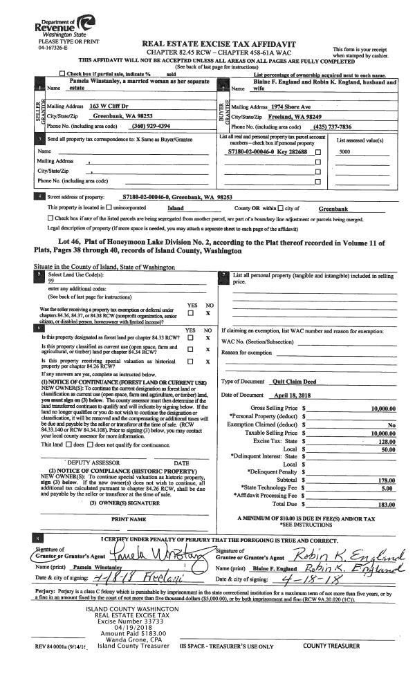 | Mailing Address: | MARY EDWARDS 2549 LA MESA DR COUPEVILLE, WA 98239 | % Ownership: | 100.0000000000% |