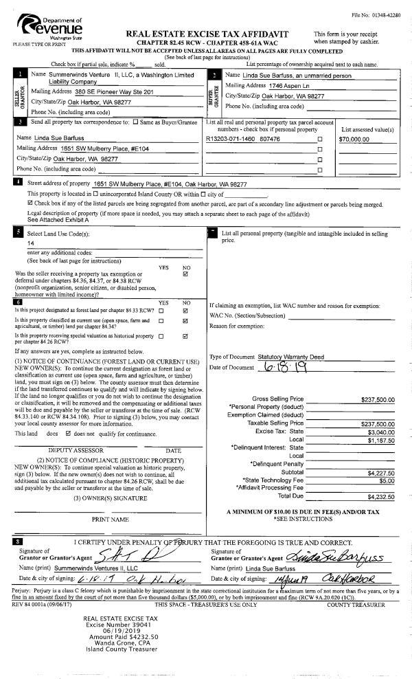 | Mailing Address: | PO BOX 1462 COUPEVILLE, WA 98239 | % Ownership: | 100.0000000000% |