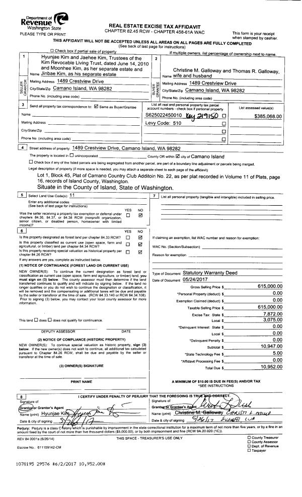 | Mailing Address: | TERESA A STONE 726 LA PALABRA ST COUPEVILLE, WA 98239 | % Ownership: | 100.0000000000% |