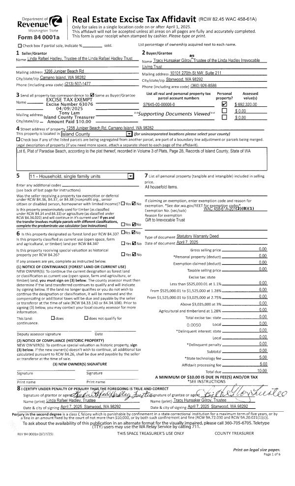 | Mailing Address: | 3531 RODESCO COURT SE PUYALLUP, WA 98239 | % Ownership: | 100.0000000000% |