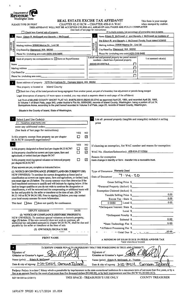 | 1 | 02/10/1999 | WD | Warranty Deed | MAYLOR, WESLEY F | ISLAND COUNTY, | | | $52,709.00 | 90696 | 99004927 |
