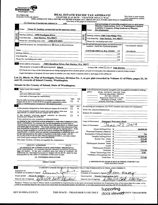 | 4 | 08/08/2019 | WD | Warranty Deed | BONANDER, SANDRA A | WALDRON CONSTRUCTION, INC. | | | $30,000.00 | 39795 | 4469033 |