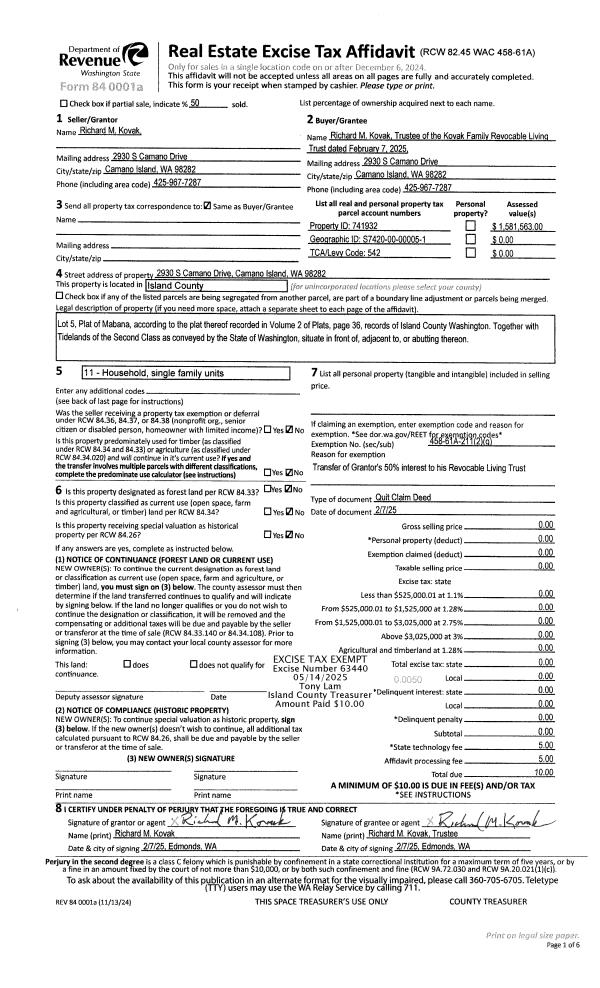 | Mailing Address: | DOREEN JENNINGS 2636 LA MESA DR COUPEVILLE, WA 98239 | % Ownership: | 100.0000000000% |