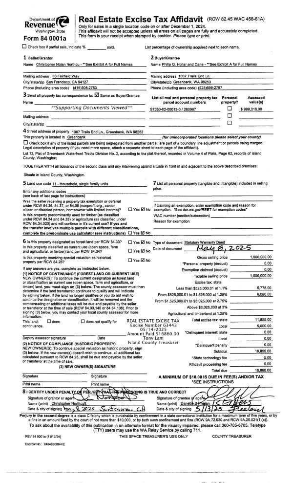 | Mailing Address: | 2644 LA MESA DR COUPEVILLE, WA 98239 | % Ownership: | 100.0000000000% |