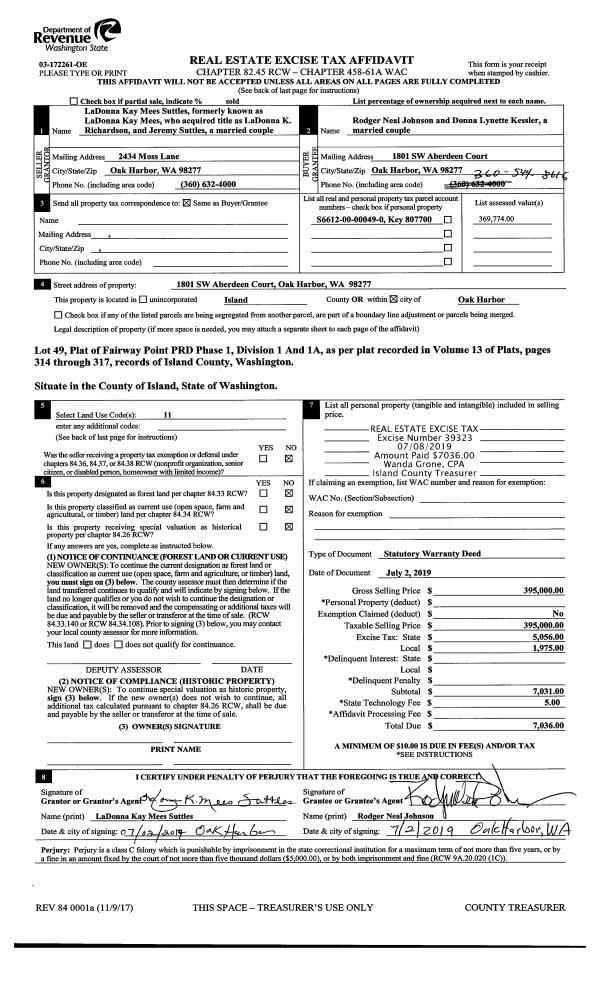 | Mailing Address: | 1492 SIERRA PARK LN CAMANO ISLAND, WA 98282 | % Ownership: | 100.0000000000% |