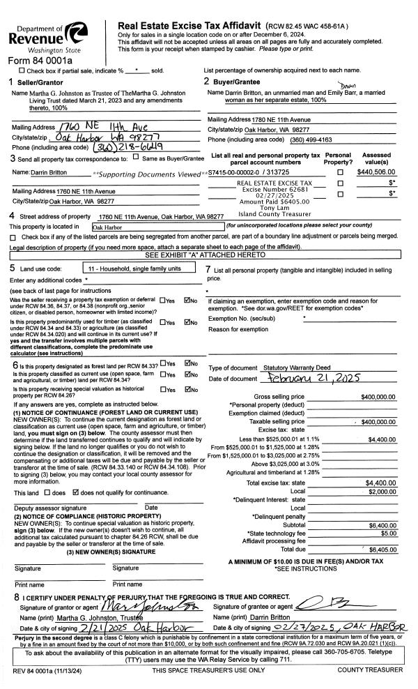 | Mailing Address: | 2875 NEWELL RD CAMANO ISLAND, WA 98282 | % Ownership: | 100.0000000000% |