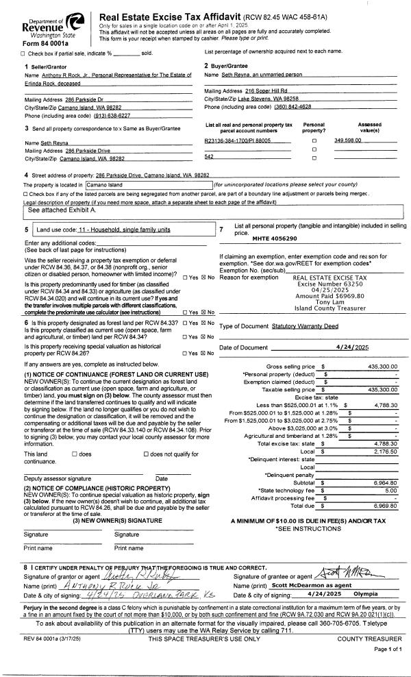 | Mailing Address: | 2908 NEWELL RD CAMANO ISLAND, WA 98282 | % Ownership: | 100.0000000000% |